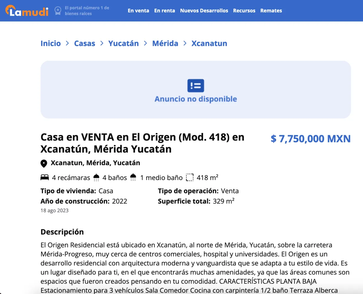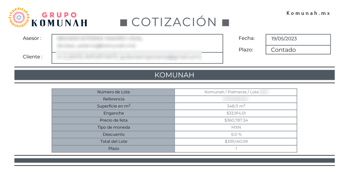 In Komunah, residential lots also present an investment opportunity, with an initial value of $339,140 MXN in 2023 and a current value of $419,000 MXN, representing a capital appreciation of 23.55%.