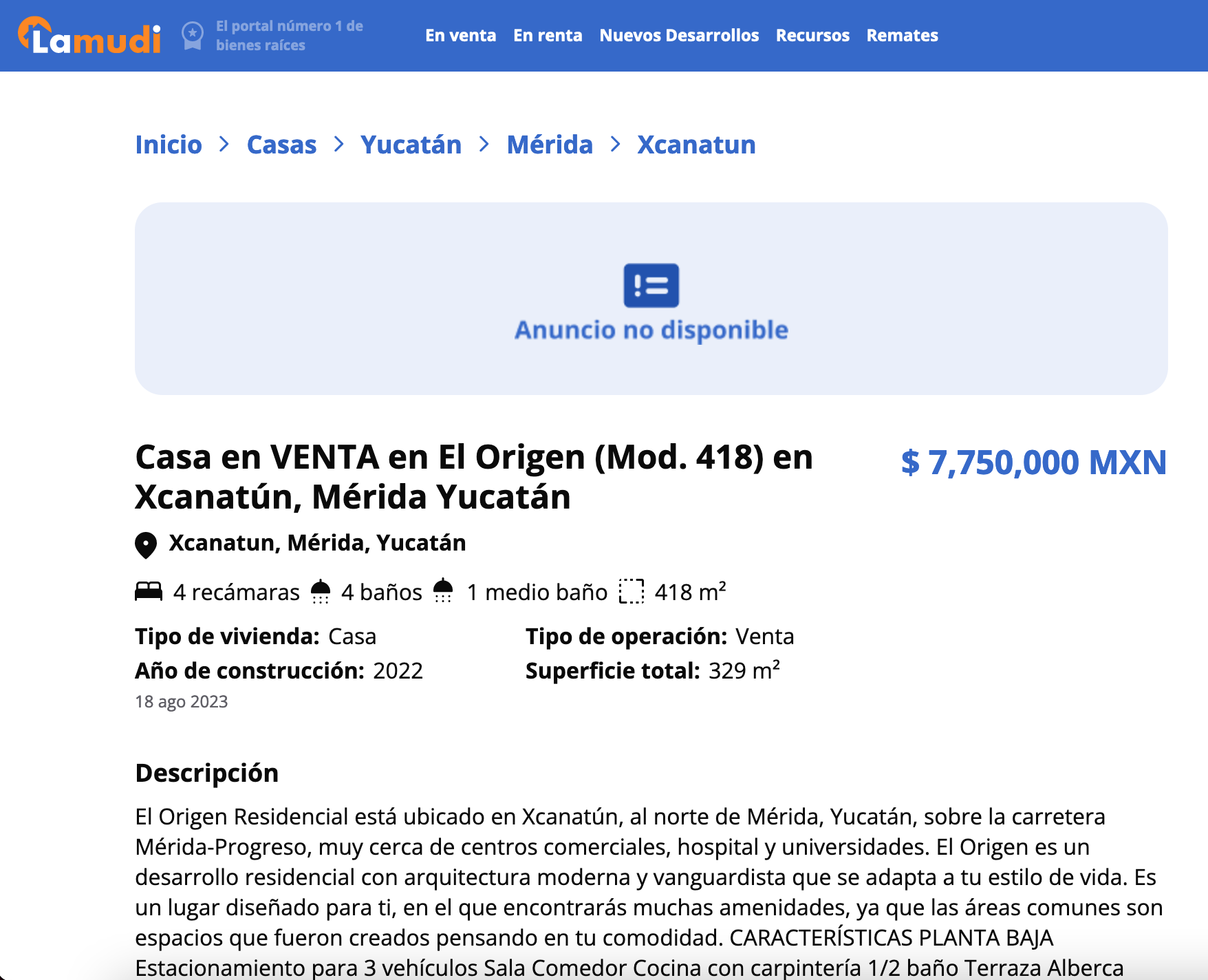 Most of the properties in Merida were built in the last 10-15 years.